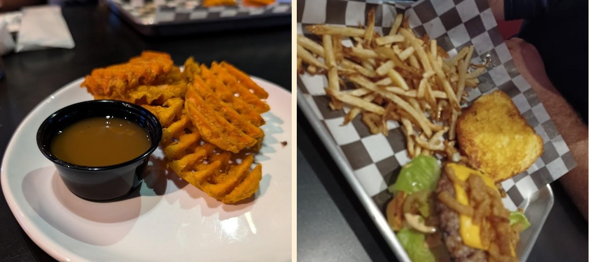 Try the Mushroom Swiss Burger or the Arena Monster Burger. The Double Chocolate Fudge Wudge Cake makes for a perfect dessert. Don't miss the wings, either, they're a crowd favorite!
